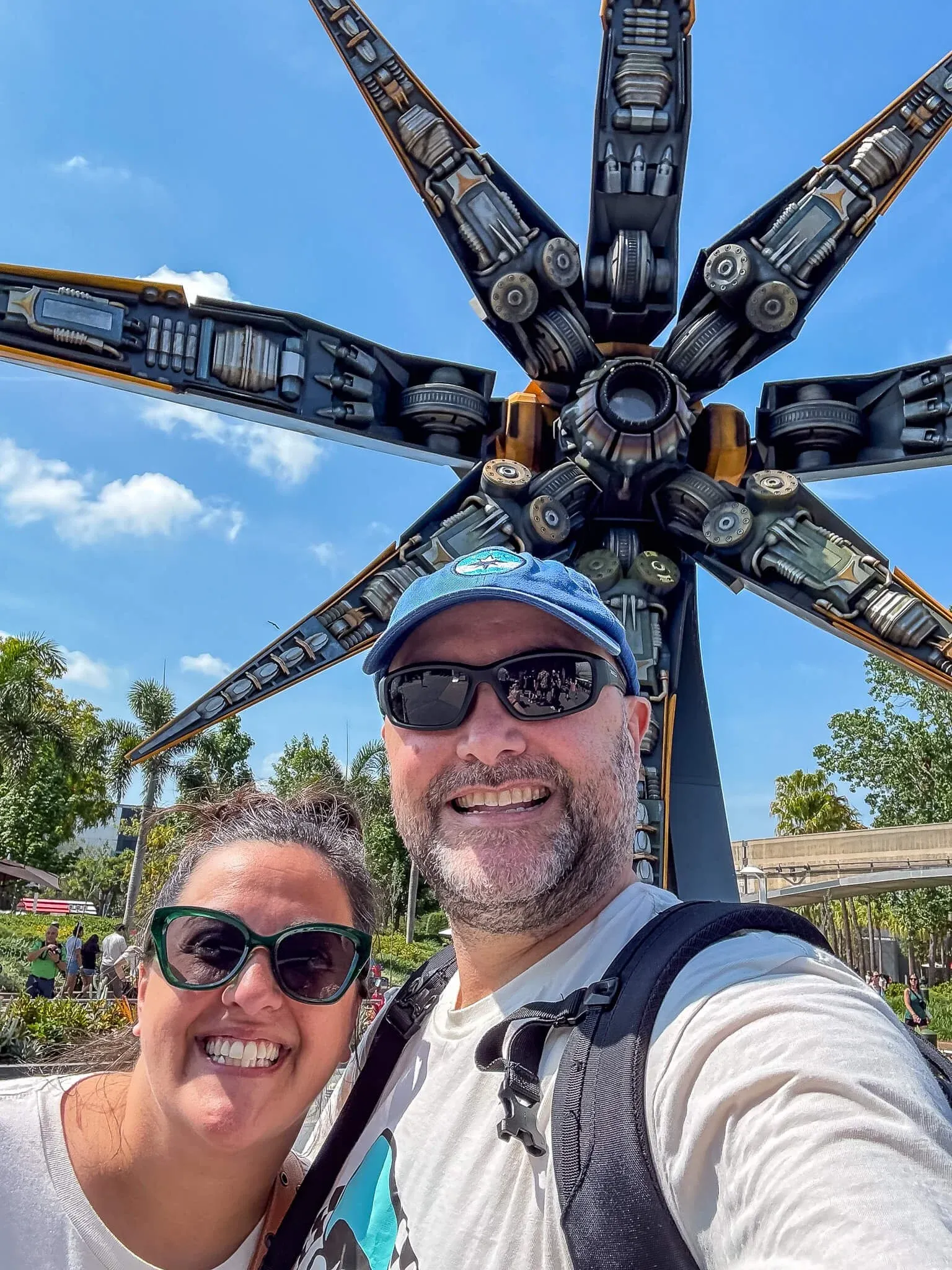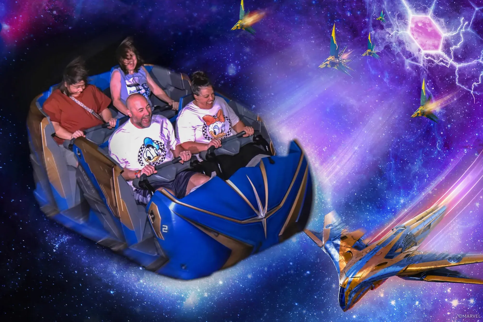 Just when we thought we might be hitting our stride, EPCOT reminded us that Disney isn’t messing around. It was 88 degrees by 9:30 a.m., zero shade, and the sun was clearly trying to kill us. We were there for Cosmic Rewind, a Guardians of the Galaxy coaster.