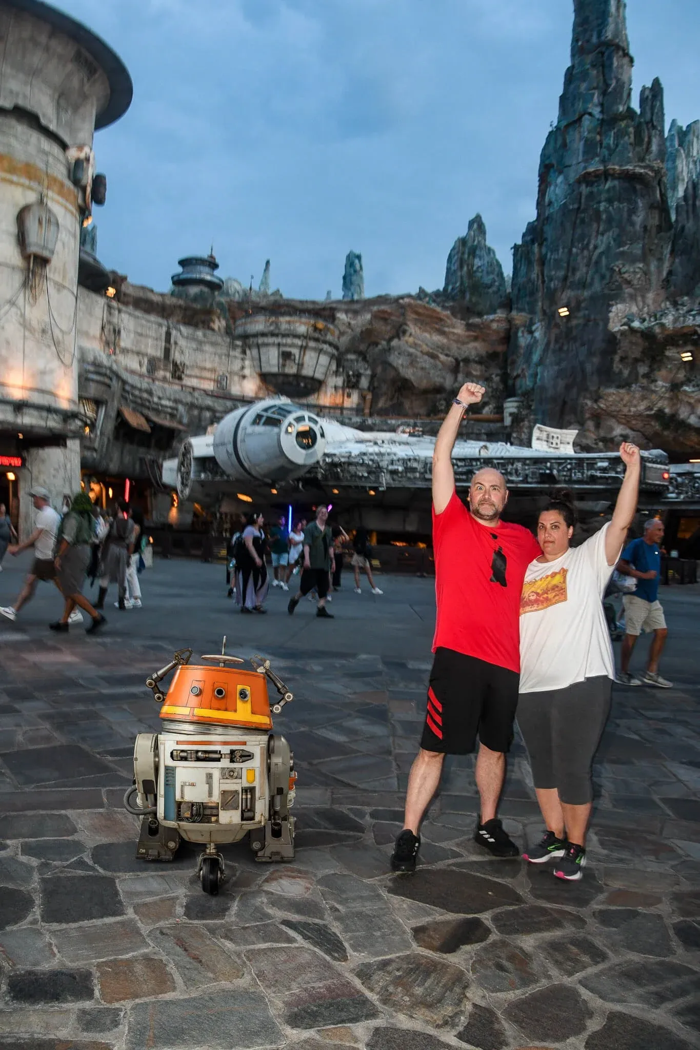 Star Wars Day at Galaxy’s Edge was nothing short of spiritual. We wore matching shirts—hers was BB-8 with Mickey ears, mine was R2-D2.